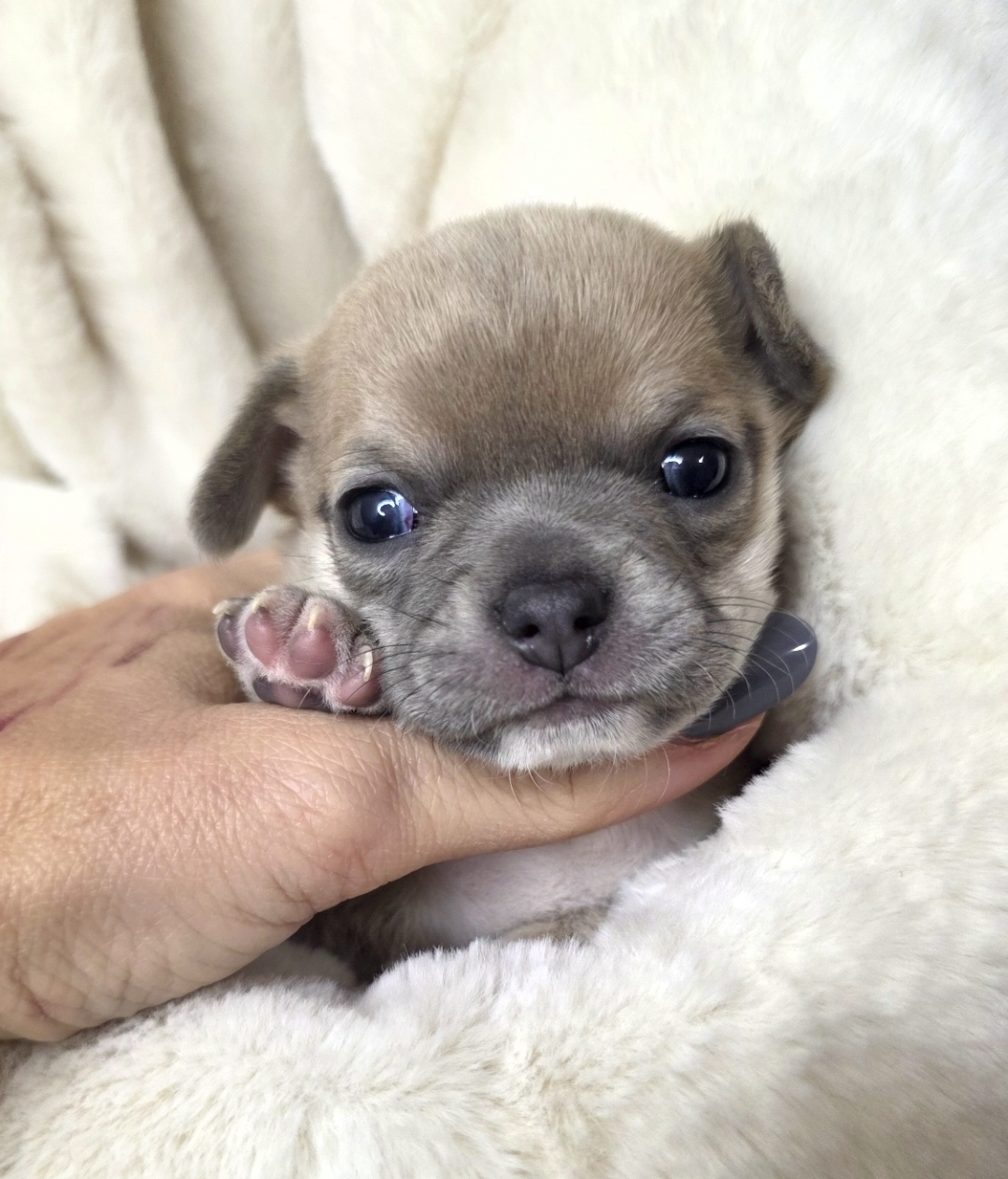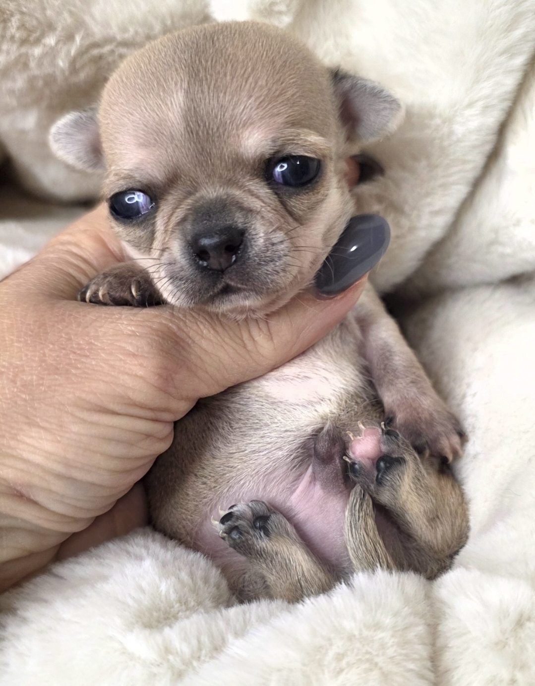 Descrizione: Meraviglioso maschietto pelo corto blue fawn occhi verdi taglia piccola
